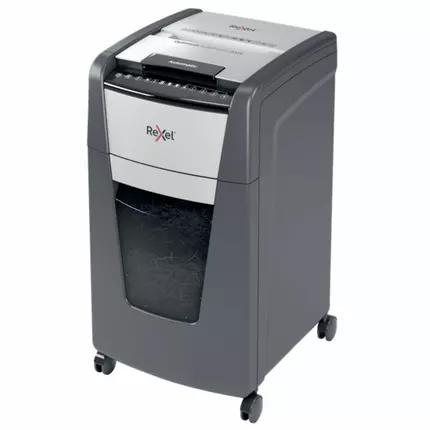 The Optimum AutoFeed+ 300X cross cut shredder automatically shreds up to 300x A4 sheets of paper (80gsm) at a time, into P-4 (4x25mm) cross cut pieces. This auto feed shredder machine is a sophisticated office shredder, featuring a 60L pull out bin. No need to manually feed paper, or remove staples and paper clips first, this automatic paper shredder will do all the work for you.