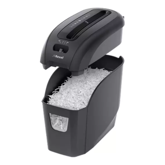 The Prostyle+ 5 Shredder shreds 5 sheets at a time into P4 (4x40mm) cross cut pieces. It can handle staples, paperclips, credit cards and features a 7.5 litre bin.
