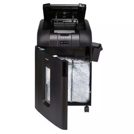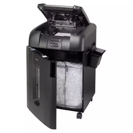 Spend 98% less time shredding, save time and money with Auto Feed shredders. The Auto+ 600M micro cut automatically shreds up to 600 sheets (80gsm) or 660 sheets (70gsm) in to P-5 (2x15mm) micro cut pieces. No need to stand and feed the paper, or remove staples or paper clips first. With an automatic feed and a 80 litre bin you can simply load up to 600 A4 sheets and leave it to get on with the job.