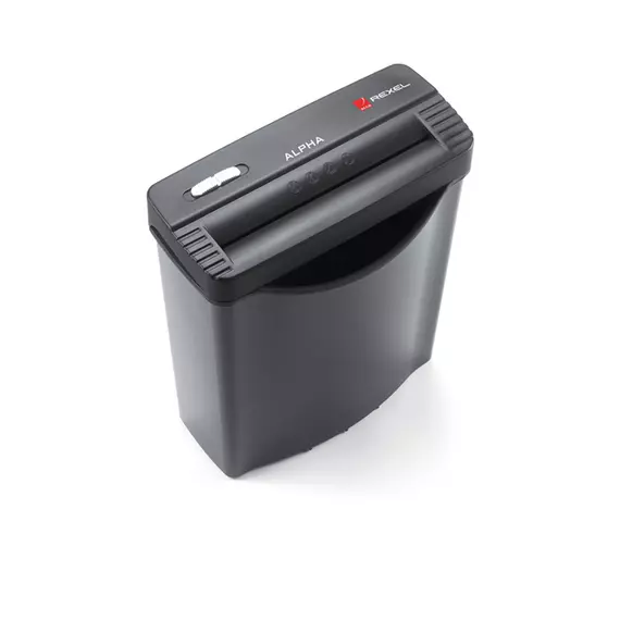 The Alpha Strip Cut Shredder shreds 5 sheets at a time into P1 (7.2mm) strip cut pieces. It can handle staples, paperclips, credit cards and features a 10 litre bin.