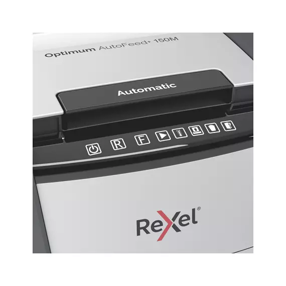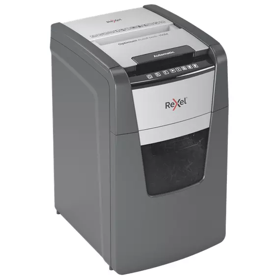 The Optimum AutoFeed+ 130M micro cut shredder automatically shreds up to 130x A4 sheets of paper (80gsm) at a time, into P-5 (2x15mm) micro cut pieces. This auto feed shredder machine is a sophisticated office shredder, featuring a 44L pull out bin. No need to manually feed paper, or remove staples and paper clips first, this automatic paper shredder will do all the work for you.