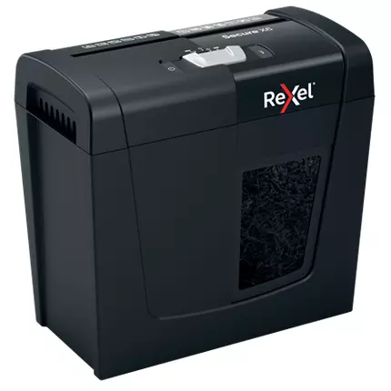 Rexel's range of Secure paper shredders are ideal for destroying your personal documents and sensitive information at home. The Secure X6 shredder machine shreds up to 6 sheets of A4 paper (80gsm) in one go through the manual feed slot into P-4 (4x40mm) cross cut pieces. This cross cut shredder is small and compact making it a perfect home shredder for use in a home office; it is also an ideal personal office shredder that fits conveniently under a desk. Designed for light to moderate use with a 10L bin capacity.