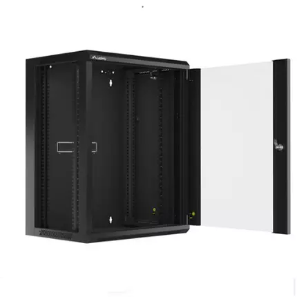 Wall mount, single section cabinet is a solution designed to expand networks, installation of cabling and equipment in size 19” with max. 60kg. loading capacity. It can be used in networks, server rooms, small and medium businesses. It can also work in low voltage systems such as cable television networks, alarm systems, fire protection systems and access control systems, CCTV and IP surveillance. Appropriate design allows simple, self-assembly. Cabinet is characterized by IP20 degree of protection, opening front door with possibility of rotate to 180° with lock, removable side panels (locks included). The cabinet has cable entry panel on top and bottom cover. This product is made of high grade cold rolled steel. Cabinet structure for self-assembly is in flat pack which facilitates transport. In addition, parcel includes additional accessories for rail mounts, M6 cage nuts and blank entry panels. Features: Cabinet type: Wall mount Body color: Black Height: 15U Cabinet dimensions (W x D x H): 600x600x774 mm Height (top panel - bottom panel): 767 mm Height (top panel - ground including screws): 774 mm Internal width spacing between rack rails: 450 mm Width of the spacing between holes of rack rails: 475 mm External width spacing between rack rails: 500 mm Maximum mounting depth: 529.5 mm Loading capacity: max. 60 KG Degree of protection: IP20 Doors type: Temper glass Standard: ANSI/EIA RS-310-D, IEC297-2, DIN41494; PART1 & PART7, ETSI Material: High grade cold rolled steel, powder coated Fan mounting slots: Yes, 120mm, 110V or 230V Glass thickness: 5.0 mm Sheet thickness: vertical mounting rails - 1,50 mm; mounting profile - 1,50 mm; others - 1,20 mm; top & bottom & side panel - 1,00 mm Cable entry panel: Top, Bottom