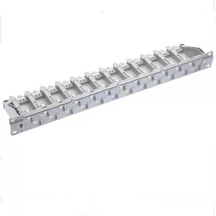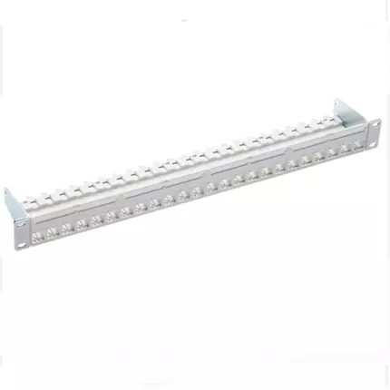 Modular patch panel with integrated cable tie shelf, integrated grounding system, 19" fastening kit, labeling fields with exchangeable labeling strips. The ports are prepared for a visual color coding system and automated infrastructure management systems. Panel polycarbonate, fiber-glass-reinforced, halogen-free material, UL 94 listed and steel: DC01 (1.0330), 1.5 mm. Color front: medium gray (NCS 2502-B) / steel: blue, chromatized. With a capacity of up to 24 shielded RJ45 connection modules of Category 6 A , class E Afor the establishing of transmission channels with up to 4 plugged connections. Features: Standard :UL Listed PoE : yes Holder for connector / module: Special (without mounting plate Rack mounting version: sub-rack
