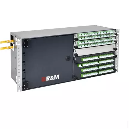 The 19” 6U CombiMODULE is a modular optical distribution system specially designed for FTTx PON and other fiber optic network applications. It can be front and back mounted and fits into standard 19” cabinets and other optical distribution frames. The fiber management is based on the SCM range at R&M and ensures a modular, flexible solution combined with high packing density. By routing the fibers with bending radius R40 it guarantees a very high safety and failure-free operation. Feature Easy removable front door with key look Lockable swing-out splice area Stress-free and easy-to-handle fiber guidance High degree of flexibility and modularity Fast, secure and easy fiber routing