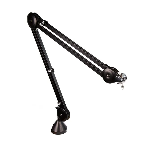The PSA1 is a professional studio boom arm that allows easy and precise placement of a microphone. It features an innovative parallelogram design that keeps the mic direction constant as the height is adjusted, as well as internal springs for quiet operation.