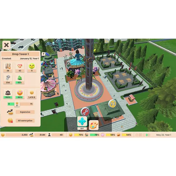 Management: a streamlined interface gives you all the controls you need to grow your park while using a game controller.