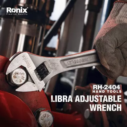 Adjustable Wrench 12 Inch RH-2404 Owning a set of fixed wrenches and spanners sounds practical and exciting but having to constantly change wrenches during work is something that can become frustrating over time. This is why adjustable wrenches have been invented; they allow the users to tighten or loosen bolts and nuts with various sizes. With the Ronix Libra Series Adjustable Wrenches, you become needless of fixed wrenches which saves space in your toolbox for more practical tools. Alongside space, you will also save a lot of time, as you spend less time changing between different sizes of spanners you have to find the right one for your work. Ronix Libra Series Adjustable Wrenches are made of high-grade steel for more strength and durability. Their highly resistant hardened jaws are designed to perform well in high pressure situations. To help the users in more precise applications, mm and inch scales are engraved on both sides of these adjustable wrenches with laser. Detailed description: Not being affected to wear and tear is something that every person who needs a hand tool has in his or her mind when choosing what tool to buy. Libra Adjustable Wrenches are made of drop forged and high-grade steel which ensures the tool’s strength and durability. The jaws of an adjustable wrench are the most important part of it, since they are directly engaged with various workpieces. Because of this, Ronix Adjustable Wrenches’ jaws (both the movable and the fixed jaw) are high resistance and hardened to perform perfectly in high pressure situations and heavy-duty applications. There is a difference in thickness of these jaws; their tips are usually narrower than their ends. This difference in thickness has a clever reason behind it. The tapered design allows the users to work with Ronix Adjustable Wrenches on tight places where usual open-end wrenches with bulky jaws cannot access. In order to make them more practical in precise applications, the jaws of our adjustable wrenches have been engraved with both millimeter and inch scales by lasers on two sides. To smoothly adjust the width of these wrenches, they are equipped with easy to turn knurls in order to grip a wide range of sizes of fasteners tightly. To handle various fasteners with different dimensions, Ronix Libra Series Adjustable Wrenches are produced in 5 sizes; 6″ (155mm), 8″ (205mm), 10″ (250mm), 12″ (300mm) and 15″ (375mm). You don’t know which size to choose? Well, based on the range of work you usually do, you can know which size suits your needs best. If you are an engineer working with electronic machines, the Ronix 6″ and 8″ wrenches are more suitable for you. But if you are a mechanic working with cars, the larger sizes will cover your needs better. If you usually work continuously and for long hours with an open-end wrench, you will definitely find the ergonomic design of our wrenches handle extremely useful. This design removes hand fatigue and enables you to have a perfect gripping experience and work with more comfort. The handle is also drop forged and high resistance to secure long lasting usages. The advanced design of our adjustable wrenches is a combination of functionality and convenience. And that is what makes working with these outstanding hand tools enjoyable. To top it all, Ronix Libra Adjustable Wrenches are coated with a corrosion-resistant satin chrome which results in more protection and easier cleaning of the tool. To sum it up, having a Ronix Libra Series Adjustable Wrench will save you a lot of time, space and effort as it is more practical than a set of fixed wrenches and also takes less space in your toolbox Features: Drop forged, high grade steel ensures strength and durability Advanced design combines functionality with convenience High resistance hardened jaw ensures perfect performance in high pressure situations Special fatigue-free ergonomic design, provides perfect gripping in long hours of working Drop forged, high resistant handle secures long lasting usage High-quality precise adjustable jaw design accelerate gripping of many fastener sizes Corrosion resistant satin chrome finishing results in anti-corrosion protection and accelerates cleaning Easy to turn knurls helps to adjust jaw width smoothly in order to grip a wide range of fastener sizes tightly laser scales in mm and inch on both sides Meets ANSI standard Specifications: Model: RH-2404 Thickness of head: 19.0mm Max. opening: 38.1mm Head width: 77mm