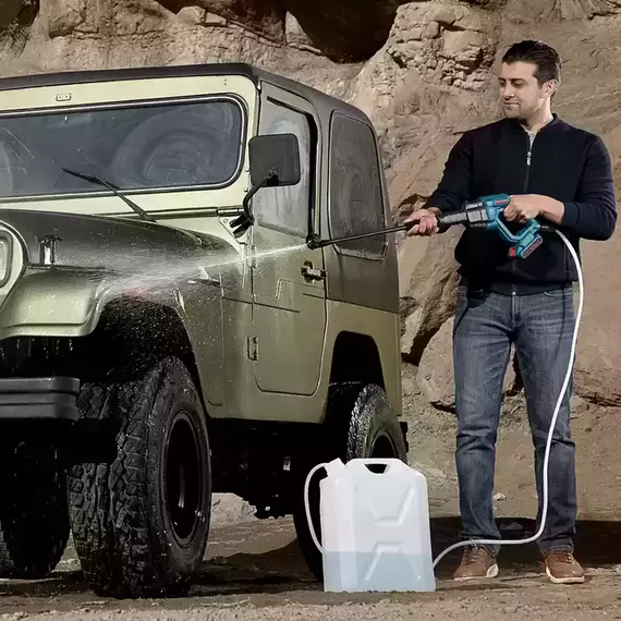 The Ronix 8930 cordless high-pressure washer converts dull, dirty, old surfaces into bright, colorful, new-looking ones. This handy equipment is a compact, battery-powered tool that can meet most of your cleaning needs and requirements. The Ronix 8930 is lightweight and portable, so it can be used in areas without water or electricity. The Ronix 8930 cordless pressure washer is ideal for cleaning with a gentle but effective medium pressure level. Features Light weight and portable-ideal for areas without water or electricity connections Self-priming function for using alternative water sources such as water butt or cisterns For cleaning the outside of your house and in your garden or for watering plants Spray lance with practical multi-function nozzle for 6 different spray types Suitable for use with detergents-includes nozzle with detergent container For cleaning with a gentle but efficient medium pressure(max.24.5 bar) 6m suction hose with a filter basket Ergonomic pistol grip with a locking switch and non-slip soft gr Specification Model: 8930 Battery Voltage: 20V Battery Capacity: 2.0Ah Max Flow: 2L/min Working Pressure: 24.5Bar Nozzle type: 6(0,15,25,40,Shower,Diagonal) Water-sucking Height: >4m Spray Response Speed: <15 Sec Battery Charging Time: 60Min Run Time: 20Min Weight: 1Kg Supplied In: Ronix Color box Includes: 6m Hose, Mesh Bag , Bottle Connector , Detergent Bottle , Lance