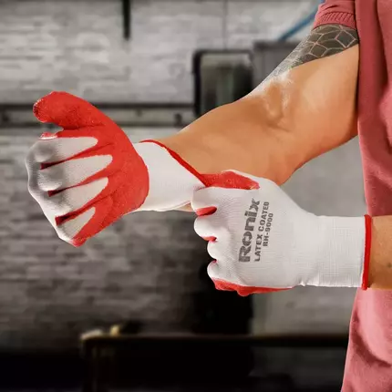 To protect your hands from any possible danger, Ronix offers a variety of resistant work gloves. Ronix Latex-Coated Work Gloves are manufactured from five-yarn fibers and a resistant latex layer which make them ideal for a wide range of jobs including plumbing, oil changing, gardening, and wet surface jobs. These work gloves can be used for everyday jobs as well as industrial applications. Ronix Latex-Coated Work Gloves are washable and resistant to abrasion, shear, tear, and puncture. Ronix Latex-Coated Work Gloves use high-quality raw materials and five-yarn fibers to be applicable for gardening and light industrial applications. These highly elastic and durable gloves are resistant to abrasion, shear, tear, and also puncture. The anti-slip and elastic knitted head sleeves and wrist cuff of Ronix Latex-Coated Work Gloves make it very easy to pull them on and off quickly. It is so important to remember that these high-quality gloves are washable; so, they are ideal for everyday use. Features Use quality raw materials and five-yarn fibers, it is good for gardening, and light industrial applications, Ergonomic design reduces hand fatigue Abrasion resistance, shear, tear and puncture, durable, highly elastic, allergen free Knitted head sleeves, Anti-slip, Elastic knit wrist cuff is easy to pull on and off quickly and keeps out debris, snug fit, Long-lasting, durable and washable Resistant to many oils and chemicals, economical for everyday use Resistant latex layer with greater thickness, Rough textured grip allows slippery objects to be gripped firmly, Five finger flexibility, made with full finger mobility and can be used with your left or right hand. each glove contains a silicone non-slip grip to protect against dropping pans Comfortable ergonomic design –the Ronix grip slip resistant gloves fit into all fingers Meets safety EN388 standard Ideal for plumbing, oil changes, and wet surface jobs. perfect glove for work sites, construction, mechanical work, gardening, etc. Specification: Brand: RONIX Model : RH-9000 Protective Tools Features: Waterproof Material: Latex Delivery Option Instant: Yes