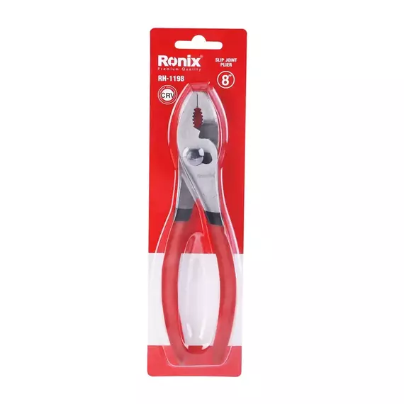 Slip Joint Pliers are multifunctional hardware grippers and benders. These pliers are useful for a wide range of tasks in a wide range of professions. RH-1190-1196-1198 RH-11 Slip Joint Pliers are an ergonomically designed hand tool from Ronix that you should have in your toolbox. These pliers are available in three sizes and will assist you in completing a variety of jobs around the house or in the workshop. Features Constructed from durable & high-quality drop forged carbon steel material for better performance and longer life time Chrome plated finish provides durability and protection from abrasion and corrosion TPR coated handle & nonslip grips provide comfort and control without adding bulk Precision-machined jaws for maximum gripping strength Variable size jaws are a flexible solution for most household jobs These plies meet or exceed ANSI Standard specification Specification Model: RH-1198 size: 8In/200mm Material: 45#Carbon steel Material hardness: HRC 38-45 Handle Material: TPR Coated packaging: Half double blister card