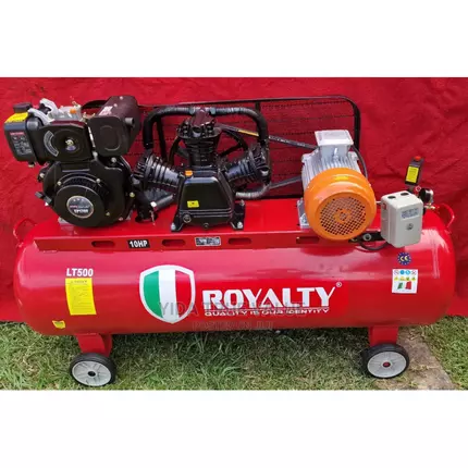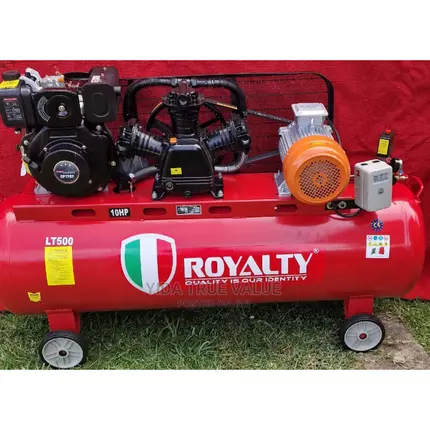 Industrial compressors turn kinetic energy into pressurized air which can be used as a source of power for a wide variety of industrial machinery. They tend to be much more powerful than construction or home compressors and can be used in situations as diverse as powering crop sprayers, operating heavy metal presses, or powering pneumatic drills. This makes having a italy air compressor 500l essential for many industrial enterprises. Key Feature: Tank Capacity : The 500-liter tank capacity indicates the amount of compressed air the compressor can store. A larger tank capacity means that the compressor can provide sustained air pressure for longer durations without needing to run continuously. High Efficiency Motor: The compressor is likely equipped with a high-efficiency motor that delivers sufficient power to operate the compressor while minimizing energy consumption. This feature contributes to cost savings and environmental sustainability. Oil-Free Design: Many modern air compressors feature an oil-free design, which eliminates the need for regular oil changes and maintenance. This design also ensures cleaner air output, making it suitable for applications where oil contamination is a concern, such as painting or pneumatic tools. Portability: Depending on the design, the compressor may feature wheels and a handle for easy transportation. Portability is especially important for users who need to move the compressor between job sites or workshops. Pressure Regulator and Gauges: The compressor is likely equipped with a pressure regulator and gauges that allow users to monitor and adjust the air pressure according to their specific requirements. This feature ensures precise control over air output for different applications. Specification: Brand: Royalty Electric air compressor litr500 Motor Hp 10