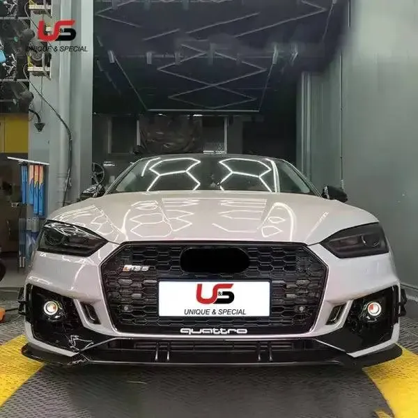 RS5 Style Front Bumper with Honeycomb Grille PP Material Compatible With Audi A5 Facelift 2017-2019