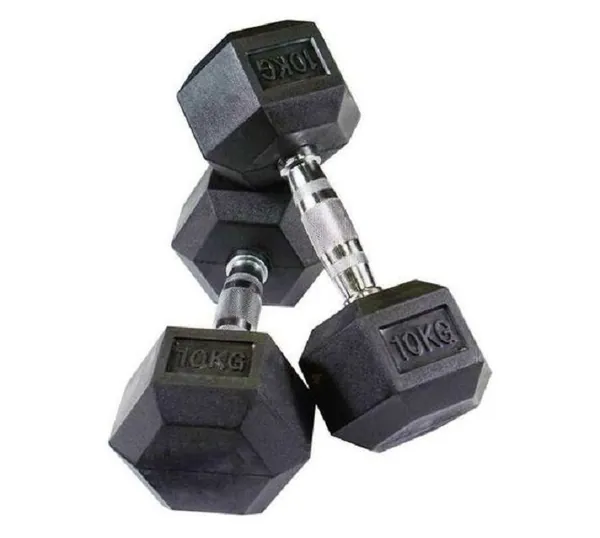 1 x Dumbbells Rubber Hex - 10kg - Set Of 2