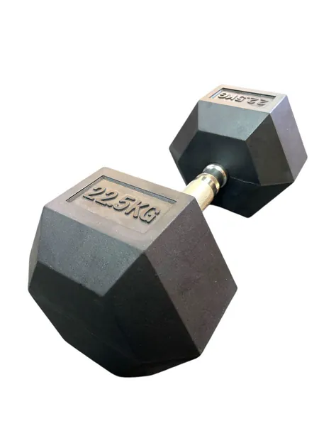 Rubber Hexagon Dumbbells - 22.5kg (SINGLES)