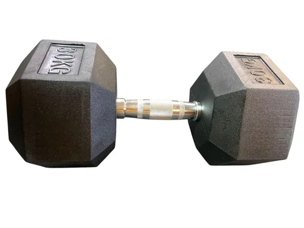 Rubber Hexagon Dumbbells - 30kg (SINGLES)
