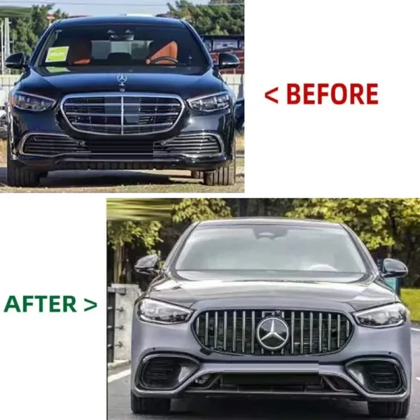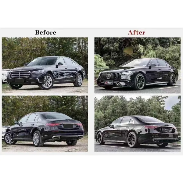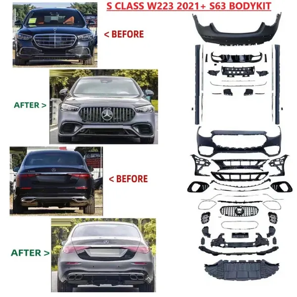 COMPATIBLE WITH MERCEDES BENZ S CLASS W223 2021-2025 CAR UPGRADE TO S63 AMG BUMPER BODYKIT FRONT AFTER LIP DIFFUSER EXHAUST TIPS FOG GRIL COVER GRILL