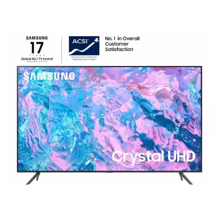 True-to-life color. Effortless connectivity. Dazzling 4K value. Samsung Crystal UHD is worth a look (and more). Effortlessly access TV shows, movies and ambient content using the Samsung Smart Hub, or find a range of great games on the Samsung Gaming Hub.*** Enjoy content even more clear than it was created as its upgraded to 4K resolution. Color and contrast are also improved with our PurColor and Contrast Enhancer technologies that instantly analyze and adjust what you see on screen. As all the visual details shine through, you’ll be surrounded by 3D sound that moves with the action, engaging all your senses. *Q-Series and S-Series soundbars sold separately. **Content services may vary by regions and are subject to change without notifications. ***High speed internet connection, additional gaming service subscriptions and compatible controller required. Glad we caught your eye True-to-life color. Effortless connectivity. Dazzling 4K value. Samsung Crystal UHD is worth a look (and more). Effortlessly access TV shows, movies and ambient content using the Samsung Smart Hub, or find a range of great games on the Samsung Gaming Hub.¹ Enjoy content even more clear than it was created as it’s upgraded to 4K resolution. Catch a rainbow of color PurColor Perceive a wider spectrum of colors than traditional RGB models with PurColor. From the green turf on the football field to an amazing sunset straight from the big screen, you’ll enjoy true-to-life picture quality with our innovative color technology that electronically adjusts and optimizes the colors on screen. *Conventional TV is a TV without PurColor When good enough isn’t Crystal Processor with 4K UHD Upscaling Watch the content you love upgraded to dazzling 4K resolution. You’ll be able to better enjoy your TV’s capabilities as the Crystal Processor automatically transforms color, sound and more. Even if the content you’re watching wasn’t produced in 4K, you can enjoy it like it was. Smooth moves Motion Xcelerator Stay cool in the driver’s seat. Don’t let the action pass by in a blur. Now you can fuel your need for speed with high-intensity sports, movies and games, and enjoy crisp and clear details at the same time. The picture on-screen moves smoothly as motion performance features make automatic adjustments so you don’t miss a thing. Look deep into