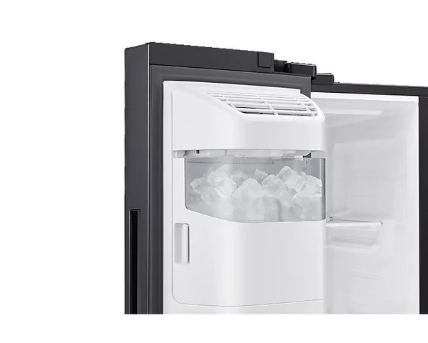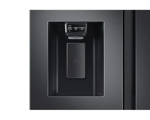 The SAMSUNG RS64R5311B4 is a spacious 617L Side by Side refrigerator featuring a non-plumbed water and ice dispenser. With its sleek Gentle Black finish and advanced cooling technologies, it offers efficient food preservation and modern convenience for your kitchen.
