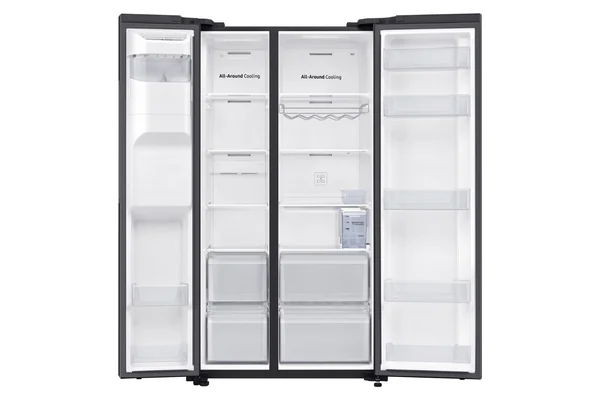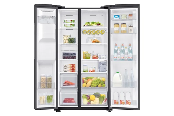 The SAMSUNG 617L Side by Side Refrigerator in Mirror Black combines sophisticated design with advanced cooling technology. Its Digital Inverter Compressor and No Frost system ensure efficient, consistent performance while maintaining optimal food freshness.