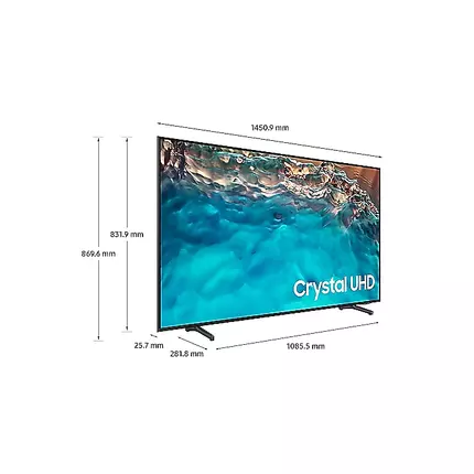 Specification Type: LED Series: 8 Screen Size: 65 " Resolution: 3,840 × 2,160 Video Picture Engine: Crystal Processor 4K Motion Rate: 50 Hz One Billion Color: Yes HDR (High Dynamic Range): HDR PQI (Picture Quality Index): 22 00 HDR 10+: Certified(HDR10+) HLG (Hybrid Log Gamma): Yes Contrast: Mega Contrast Colour; Dynamic Crystal Color Brightness/Colour Detection: Brightness Detection Micro Dimming: UHD Dimming Contrast Enhancer: Yes Auto Motion Plus: Yes Natural Mode Support: Yes Clear Motion: LED Clear Motion Noise Reduction: Yes Film Mode: Yes Audio Dolby Digital Plus: MS12 2ch Adaptive Sound: Adaptive Sound Object Tracking Sound: OTS Lite Q-Symphony: Q-Symphony Sound Output (RMS): 2 0 W Speaker Type: 2CH Bluetooth Audio: Yes Multiroom Link: Yes Smart Service Samsung SMART TV: Smart Operating System: Tizen™ Bixby: US English, UK English, India English, Korean, French, German, Italian, Spanish, BR Portuquese (features vary by language) Far-Field Voice Interaction: Yes Smart Things: Yes Smart View: Yes Smart Feature TV to Mobile - Mirroring: Yes Mobile to TV - Mirroring, DLNA: Yes Mobile Tap Mirroring: Yes Tap View: Yes Sound Wall: Yes Remote Access: Basic 360 Video Player: Yes WiFi Direct: Yes Sound Mirroring: Yes Game Feature Auto Game Mode (ALLM): Yes Game Motion Plus: Yes Tuner/Broadcasting Digital Broadcasting: DVB-T2CS2 Analog Tuner: Yes TV Key Support: Yes Connectivity HDMI: 3 USB: 2 Composite In (AV): 1 Ethernet (LAN): Yes Digital Audio Out (Optical): 1 RF In (Terrestrial / Cable input): 1/1 Ex-Link ( RS-232C ): 1 HDMI A / Return Ch. Support: Yes eARC: Yes HDMI Quick Switch: Yes Wireless LAN Built-in: Yes (WiFi5) Bluetooth: Yes (BT5.2) Anynet+ (HDMI-CEC): Yes Design Design: AirSlim Bezel Type: 3 Bezel-less Slim Type: Slim look Front Colour: BLACK Stand Type: FLOAT LIFT Additional Feature Instant On: Yes Accessibility: Voice guide(UK English, German, French, Spanish, Italian, Dutch, Polish, Danish, Swedish, Finnish, Norwegian, Portuguese, Russian(only when connecting to Network in EE,LV,LT))/ Enlarge/ High contrast/ Learn TV Remote(UK English, German, French, Spanish, Italian, Dutch, Polish, Danish, Swedish, Finnish, Norwegian, Portuguese, Russian(only when connecting to Network in EE,LV,LT))/ Multi-output Audio One Connect (Jack): One Connect Mini Ultra Clean View: Yes Digital Clean View: Yes Auto Channel Search: Yes Caption (Subtitle): Yes Connect Share™ (HDD): Yes ConnectShare™ (USB 2.0): Yes Embeded POP: Yes EPG: Yes Extended PVR: Yes Game Mode: Yes OSD Language: 27 European Languages + Russian(only for EE,LV,LT) Picture-In-Picture: Yes BT HID Built-in: Yes USB HID Support: Yes Time Shift: Yes MBR Support: Yes Power & Eco Solution Power Supply: AC220-240V 50/60Hz Power Consumption (Max): 215 W Eco Sensor: Yes Auto Power Off: Yes Dimension Package Size (WxHxD): 1612 x 950 x 164 mm Set Size with Stand (WxHxD): 1450.9 x 869.6 x 281.8 mm Set Size without Stand (WxHxD): 1450.9 x 831.9 x 25.7 mm Weight Package Weight: 28.3 kg Set Weight with Stand: 21.3 kg Set Weight without Stand: 20 .9 kg Accessory Remote Controller Model: TM2280E Batteries (for Remote Control): Yes Power Cable: Yes