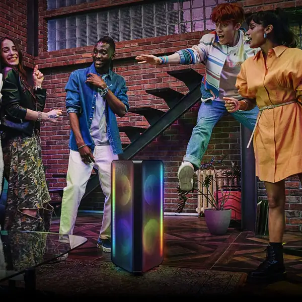 Group Play: Connect up to 10 Samsung Sound Towers for synchronized audio