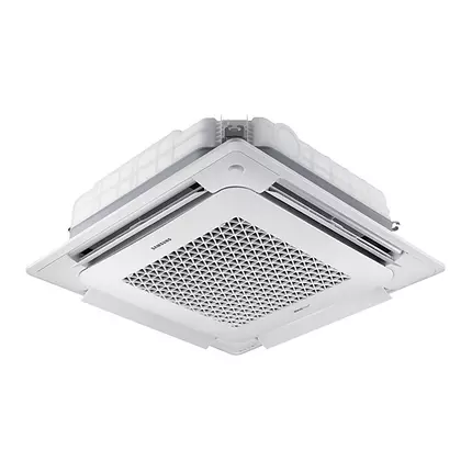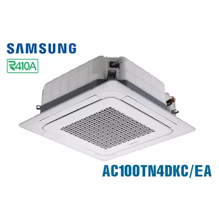 Exquisite, compact design suitable for modern ceilings and interior architectures. Cooling capacity 36000BTU (4.0HP) suitable for area 50 - 54 m. Clean, environmentally friendly refrigerant Gas R410A. Stylish and clean design. Uses Digital Inverter technology to save energy by automatically adjusting the compressor and continuously adapting to the surrounding environment. This superior performance provides comfortable cooling and reduces energy consumption by up to 60%. Intelligent 4-way louver design, disperses strong airflow evenly throughout the room. Users can independently control the four flaps and choose the settings according to their needs for comfort and convenience. Feature Stay cool without direct wind WindFree™ WindFree™Cooling effectively maintains a comfortable level of coolness without the unpleasant feeling of cold wind.Cool air is gently dispersed through 15,672 micro air holes, so you won’t feel too hot or cold. Energy saving with WindFree™ Cooling Energy Saving WindFree™ Cooling allows efficient energy saving up to 55%. Wider cooling range Big Blade Big and optimized blades enable even wider cooling range. Optimized operation by MDS Motion Detect Sensor Motion Detect Sensor enables customized air flow and energy effcient operation. Specification Type: 10kW-1Φ-4Way Indoor Unit: AC100TN4DKC/EA Outdoor Unit: AC100TXADKC/EA Mode: COOLING ONLY Cooling [kW]: 3.0 / 10.0 / 12.0 kW Current Input (Nominal) Cooling 1: ) 3.0/14.8/20.4 A Power MCA [A]: 26.0 A MFA [A]: 30.0 A EER (Nominal Cooling): 3.20 Piping Connections Liquid Pipe (Φ, mm): 9.52 mm Liquid Pipe (Φ, inch); 3/8" Gas Pipe (Φ, mm): 15.88 mm Gas Pipe (Φ, inch): 5/8" Installation Max. Length [m]: 50 m Installation Max. Height [m]: 30 m Field Wiring Transmission Cable: 0.75↑ Refrigerant Type: R410A Control Method: EEV Factory Charging (kg): 3.00 kg Power Supply (Indoor Unit) [Φ, #, V, Hz] 1,2,220-240,50 Fan Type: Turbo Motor (Output) [W]: 97 W Number of Unit (EA): 1 EA Air Flow Rate (High / Mid / Low) [CMM]: 30.3/24.3/19.4 CMM Drain Drain Pipe (Φ,mm): VP25 (OD 32,ID 25) Sound Sound Pressure (High / Mid / Low) [dB(A)]: 43/38/33 dBA External Dimension (Indoor Unit) Net Weight: 20.0 kg Shipping Weight (kg): 23.5 kg Net Dimensions (WxHxD) (mm): 840 x 288 x 840 mm Shipping Dimensions (WxHxD) (mm): 898 x 357 x 898 m Panel Size Panel model: PC4NUFDAN Panel Net Weight (kg): 6.3 kg Shipping Weight (kg): 8.7 kg Net Dimensions (WxHxD) (mm): 950 x 48 x 950 mm Shipping Dimensions (WxHxD) (mm): 1010 x 117 x 1000 mm Additional Accessories Drain Pump: Built in Drain Pump Max. Lifting Height/Displacement: 750 /24 Power Supply (Outdoor Unit) [Φ, #, V, Hz] 1,2,220-240,50 Compressor Type: Twin BLDC Rotary Model: UG8T300FUBJU Output(kW): 2.82 kW Oil (Type): POE Oil (Initial Charge) [cc]: 1200 cc Fan (Outdoor Unit) Air Flow Rate (Cooling) [CMM]: 76 CMM Sound (Outdoor Unit) Sound Pressure (Cooling / Heating) [dB(A)]: 53 dBA External Dimension (Outdoor Unit) Net Weight: 71.0 kg Shipping Weight (kg): 76.0 kg Net Dimensions (WxHxD) (mm): 940 x 998 x 330 mm Shipping Dimensions (WxHxD) (mm): 995 x 1096 x 426 mm