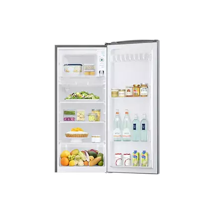 Stylish Crown Design The stunning, arched crown of the new range is just one example of its outstanding design aesthetics. While the inside of the refrigerator is designed to make your life more convenient, the outside will also make it much more stylish and glamorous. Big Veg Box A quick glance is all it takes to find the right food thanks to a transparent, bigger vegetable box. It's also spacious enough to store large items, such as watermelon, and keep lots of other fruits and vegetables in the same place, so it's much easier to find everything you want. Tempered Glass Shelves It's safety first with the tempered glass shelves, which can endure heavy items. They're also free from heavy metals, like lead and cadmium, so there's no risk of your food being contaminated. Antifungal gasket Keep your food extra hygienic with an anti-fungal door gasket that prevents fungi and bacteria from getting in and building up inside your refrigerator. Big Bottle Guard Why struggle to find space for larger bottles? You can easily store all of your favorite beverages using the spacious Big Bottle Guard in the new range of Samsung refrigerators. Specifications: Capacity: 176 ℓ Net Total (Liter): 176 ℓ Physical specifications Net Dimension (WxHxD)(mm): 519 x 1244 x 520 mm Net Width (mm): 519 mm Net Case Height with Hinge(mm): 1244 mm Net Depth with Door Handle(mm): 520 mm Packing Dimension (WxHxD)(mm): 545 x 1332 x 568 mm Net Weight (kg): 33 kg Packing Weight (kg): 36 kg 20/40/40H (Container): //172 Cooling Feature Cooling Type: Direct Cooling Refrigerator Feature Number of Shelf (Total): 3 EA Shelf Material: Tempered Glass Number of Vegetable & Fruit Drawers: 1 EA Number of Door Pockets: 3 EA Egg Container (Egg Tray): Yes Interior Light: LED General Features Compressor: AC Refrigerant: R600A Exterior Features Display & Control (Fridge Only): Knob Door handle: Recess Color: Metal Graphite Installation Freestanding: Yes