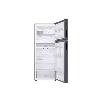 ** Testing by Samsung Electronics. Data was provided to Intertek who assisted Samsung in interpreting the data in accordance with Samsung’s project plan. Tested on RT47CB668422ST and based on analysis of the APC (aerobic plate count) of sample foods after storage in the test units. Applies when set to Soft Freeze(knob MAX & temp. display 1℃), compared to Fridge room(2℃) in the fridge compartment. Results may vary depending on freshness, usage conditions, and other factors before storage. More space inside SpaceMax™ Store more food in a spacious interior with 20 liters more capacity*. Unique SpaceMax™ technology uses special high urethane insulation that enables the walls to be much thinner without compromising energy efficiency. So it creates more space inside. * Based on the RT47CG6644S9ST compared with the RT43K6230S8/ST models. Always plenty of ice Auto Ice Maker (* Optional) Make sure that you have plenty of ice for cold drinks whenever you want and create space in the fridge. The Auto Ice Maker* automatically makes and stores ice cubes in the bin below, which you can take out to serve ice anywhere. And, being built into the freezer, it frees up room in the fridge. * Available on certain models. 99.99% less bacteria* on the air filter Active Fresh Filter (* Optional) Keep the fridge clean and hygienic, reducing the risk of food being contaminated. An Active Fresh Filter* eliminates 99.99% of bacteria** on the filter’s surface. Air passes through an activated carbon filter, so it is sterilized and deodorized, while an anti-bacterial mesh eliminates bacteria. * Available on certain models.**Tested by Intertek. 99.99% of Staphylococcus Aureus and Escherichia Coli. Smart control Wi-Fi Embedded Monitor and manage the refrigerator anytime, anywhere. Its embedded Wi-Fi lets you track and adjust its performance using the SmartThings App*. You can easily control the Rapid Cooling mode, change the temperature, and get alerts if the door is left open. It will also detect and diagnose issues. * Available on Android and iOS devices. A Wi-Fi connection and a Samsung account are required. Multi Tray (*Optional) Make good use of your fridge space. A detachable Multi Tray* fits underneath the shelves and lets you neatly store and organize various small items, like bottles and cans, as well as food and ingredients, such as pizzas and egg boxes. And it is easy to take out, so you can serve them anywhere. * Available on certain models. Fast cooling on demand of food & drinks Power Cool Enjoy a rapid cooling performance to chill food and beverages fast. At the touch of a button, Power Cool blows intensely cold air into the fridge. You can quickly cool your weekly groceries to lock in their freshness and flavor or rapidly chill your favorite drinks for a party or dinner. Cools evenly from corner to corner All-Around Cooling Take food storage to a new level of optimized cooling and preserve freshness effectively. Advanced All-Around Cooling continually checks the temperature and circulates cool air through strategically placed vents. So every item on every shelf and in every box is kept at the optimum temperature. Specifications: Net Total: 393 ℓ Net for Freezer: 98 ℓ Net for Fridge: 295 ℓ Physical specification Net Dimension (WxHxD): 700 x 1715 x 672 mm Packing Dimension (WxHxD): 738 x 1810 x 730 mm Net Weight: 59.5 kg Packing Weight: 65.5 kg 20 / 40 / 40 H (Container): 21/48/66 Cooling Feature No Frost: Yes Multi-Flow: Yes Cooling Type: Mono Cooling Refrigerator Feature Deodorizer: Yes Number of Shelf (Total): 3 EA Shelf Material: Tempered Glass Number of Vegetable & Fruit Drawers: 1 EA Number of Door Pocket: 4 EA Egg Container (Egg Tray): Yes Optimal Fresh Zone: Yes Interior Light: Yes Active Fresh Filter: No Freezer Feature Ice Maker: Twist Shelf Material: Plastic + Coolpack Number of Shelf (Total): 1 EA Number of Door Pocket: 2 EA General Feature Refrigerant: R-600a Compressor: Digital Inverter Compressor Exterior Feature Display Type: Internal Door Handle: Recess Color: Black DOI Energy Energy Grade: 2 Star Smart WiFi Embedded: No ftd16_interactive multi feature-product detail-indicator Store small items Multi Tray (*Optional) Make good use of your fridge space. A detachable Multi Tray* fits underneath the shelves and lets you neatly store and organize various small items, like bottles and cans, as well as food and ingredients, such as pizzas and egg boxes. And it is easy to take out, so you can serve them anywhere. * Available on certain models. Efficient compressor Digital Inverter Technology Enjoy great energy efficiency, little noise and a long-lasting performance. The Digital Inverter Compressor automatically adjusts its speed in response to cooling demand. So it’s quiet, uses power efficiently and keeps working for a long time, backed-up by a 20 year warranty* on the compressor. * 20 year warranty is limited to the compressor only. Sleek & modern look Design Give your home an elegantly sleek and modern look. The clean and contemporary design features strikingly beautiful flat doors with a premium silver deco around the edge and recessed handles that don’t protrude. So it will fit seamlessly with kitchen appliances and enhance the look of your home. Fast cooling on demand of food & drinks Power Cool Enjoy a rapid cooling performance to chill food and beverages fast. At the touch of a button, Power Cool blows intensely cold air into the fridge. You can quickly cool your weekly groceries to lock-in their freshness and flavor or rapidly chill your favorite drinks for a party or dinner. Cools evenly from corner to corner All-Around Cooling Take food storage to a new level of optimized cooling and preserve freshness effectively. Advanced All-Around Cooling continually checks the temperature and circulates cool air through strategically placed vents. So every item on every shelf and in every box is kept at the optimum temperature.