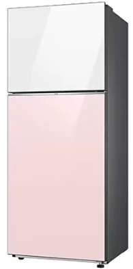 The Samsung RT38CB66218CUT is a 393L Bespoke refrigerator featuring a stylish white and pink double door design with a top freezer. It combines smart technology, efficient cooling, and customizable aesthetics for a modern kitchen.
