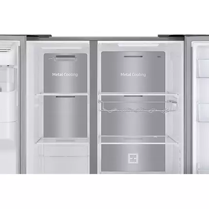 Space Max™ Technology Flex Zone All-around Cooling Digital Inverter 20 Year Warranty on the Compressor Durable & Efficient Enjoy great energy efficiency and a long-lasting performance. The Digital Inverter Compressor automatically adjusts its speed in response to cooling demand. So, it uses significantly less power and is certified to work for 21 years*, backed up by a 20-year warranty**(limited to the compressor only), longest in the industry. * Awarded a 21 year durability certification by the Association for Electrical, Electronic & Information Technologies in Germany (Verband Deutscher Elektrotechniker – VDE). Actual lifespan may vary depending on the usage circumstances. ** As of November 2022, the 20 year parts warranty is only applicable to the Digital Inverter compressor. More fresh space inside, more seamless style outside SpaceMax™ Technology Store more food with a very spacious 602 liter* interior. Its unique SpaceMax™ technology enables the walls to be much thinner as it uses a minimal amount of high-efficiency insulation. So it creates more storage space without increasing the external dimensions or compromising energy efficiency. * The capacity is different for each model. Always fresh food, wherever it is All-around Cooling Make sure that all your food is properly cooled – wherever it is in the fridge. An All-around Cooling system continually checks the temperature and blows out cold air. It cools the fridge evenly from corner to corner, so every item of food stays fresher for longer. Minimize cool air loss by 55%* 3 Door SBS Store and organize your food more efficiently for the ultimate convenience. The 3-door, side-by-side (SBS) refrigerator has two fridges and one freezer. With its upper and lower fridge, it minimizes cool air loss by 55%, so you can save energy. And everything can be kept well organized. Perfectly harmonious and stylish design Sleek & Seamless Design Give your home a stylishly integrated and modern look. Its sleek and seamless counter-depth design will fit perfectly with the dimensions of your existing appliances and cabinetry to create a harmonious kitchen interior. It also has beautiful flat doors with recessed handles that don’t protrude. Holds in the cold for lasting freshness Metal Cooling Keep your food fresh, even if you frequently open and close the door. The Metal Cooling duct in the rear wall helps to maintain the optimal internal temperature. It retains the cold and prevents the loss of cool air when the door is open. And it quickly restores any heat loss when it’s shut again. Fast cooling and freezing on demand Power Cool / Power Freeze Enjoy a rapid cooling performance. At the touch of a button, Power Cool blows intensely cold air into the fridge to quickly cool your groceries or favorite drinks. And Power Freeze delivers a fast blast of cold air into the freezer. It’s great for freezing or firming up frozen food and making ice. Easily find and reach food at the back EZ Slide Shelf Organize, put in and take out food more easily, so there's no dead space, with the EZ Slide shelf. It is built on rolling hinges and simply slides in and out. So you can easily find and reach things at the back and in the corners without having to navigate through an obstacle course of items. More ice, more freezer storage space Slim Indoor IceMaker Create more space to store more food, but still have enough ice with a Slim In-door Ice Maker*. As it’s built into the door, it gives you extra storage by freeing up freezer shelf space, but can make and store plenty of ice. And its transparent plastic cover lets you easily see how much is left. * Available on 3 door non-dispenser model only. Neatly store more of your favorite wine Wine Rack Organize and neatly store more wine. A Wine Rack is designed to safely store bottles of wine, so they don’t roll around and are easy to reach. It can be installed in either the upper or lower fridge compartments. So you can easily enjoy a glass of deliciously chilled wine whenever you like. Odor eliminator maintains natural flavor Deodorizing Filter Keep the inside of the refrigerator deodorized and preserve the original flavor and aroma of food for longer. The built-in natural fiber Deodorizing Filter eliminates strong smells as the air is continually passed through activated carbon filters. So here's no need for other odor fighting solutions. Easily store more vegetables & fruit Vege Box A large capacity Vege Box provides a convenient space to store a large amount of fresh vegetables and fruit. And because it’s so big it’s much easier to find everything, as they’re all in one place and easy to get to, so you can enjoy them more often without taking up valuable kitchen space. Specifications Gross Total(Liter): 650 Net Total(Liter): 602 Net Width(mm): 912 Net Case Height with Hinge(mm): 1780 Net Depth with Door Handle(mm): 716 Net Weight(kg): 112 Freezer Feature Number of Shelf (Total):4 EA Number of Door Pocket: 2 EA Icemaker: Auto Indoor I/M Interior LED Light Number of Drawer: 2 EA General Feature Door Alarm Refrigerant: R600a Cooling Cover: Metal Cooling Duct Compressor: Digital Inverter Compressor Cooling Feature Power Cool Function Power Freeze Function Cooling Type: Mono Cooling Number of Shelves (Total): 2 EA Number of Shelves (Slide Out): 1 EA Drawer Type: Flex Zone (0/1/3℃, Fridge) Wine Rack Number of Door Pocket: 5 EA Egg Container(Egg Tray) Interior LED Light Number of Vegetable & Fruit Drawers: 2 EA Exterior Feature Dispenser with Water Filter Display Type: Internal (Ice Blue) Door Handle: Recess Color Gentle Silver Matt Dispenser Type & W Dispenser(Plumbing) Door Type:3door Noise Level: 40 dBA Energy Consumption: 650 kWh/year Vacation Mode Physical specification Net Width(mm): 912 Net Case Height with Hinge(mm): 1780 Net Case Height without Hinge(mm): 1744 Net Depth with Door Handle(mm): 716 Net Depth without Door Handle(mm): 716 Net Depth without Door(mm): 610 Packing Width(mm): 974 Pack