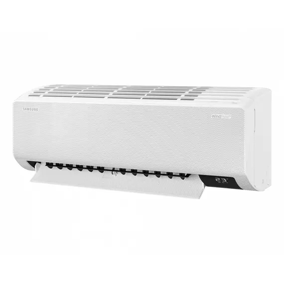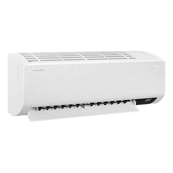 Stay comfortably cool without feeling cold Wind-Free™ Cooling Stay comfortable cool with Wind-Free™ Cooling. It gently and quietly disperses air through 23,000 micro air holes, so there is no unpleasant feeling of cold wind on your skin. Its advanced airflow also cools a wider and larger area more evenly. And it uses 77% less energy than Fast Cooling***. Environmentally friendly refrigerant R32 Refrigerant Protect the planet by reducing the impact of climate change. The air conditioner uses the next generation R32 refrigerant, which helps conserve the ozone layer and has a low impact on global warming compared to conventional R22 or R410A refrigerants. So it’s much more environmentally friendly*. Saves energy & money, cools effectively ECO Mode Save energy, but still stay cool. ECO mode uses less compressor capacity compared to Normal mode, which reduces energy consumption*. It lets you cool more efficiently when it’s not too hot outside or just save energy and money at any time, so you don’t have to worry about the electricity bills. Wide airflow with 4wayauto swing 4way Swing Control the wind direction Up/Down, Left/Right using remote controller. Control the wind to your desired location. Wash outdirt & dust inside with a press Freeze Wash Maintain the optimum performance with the push of a button. Freeze Wash quickly freezes the Heat Exchanger and then defrosts the ice. So it is washed in water, which washes away dirt and 90%" of microorganisms*. Finally, it dries up any moisture left. And it alerts you when it is time for a clean**. Specifications Brand: Samsung Code: AR09BVEAMWK Capacity: 9000BTU Type: Air Conditioner EER (Cooling, W/W): 2.90 W/W Net Dimension (Outdoor, WxHxD, ㎜*㎜*㎜): 880*638*310 mm Technical Information Piping Length (Max, m): 20 m Piping Height (Max, m): 12 m SVC Valve (Liquid (ODxL)): 6.35 SVC Valve (Gas (ODxL)): 15.88 Moisture Removal (l/hr): 2.5 l/hr Air Circulation (Cooling, ㎥/min): 18.6 ㎥/min Refrigerant (Type): R410A Refrigerant (Charging, kg): 1.40 kg Refrigerant (Charging, tCO2e): 2.92 tCO2e Low Ambient (Cooling, ℃): 16~46 ℃ Outdoor Unit (Compressor Type): BLDC Outdoor Unit (Anti-Corrosion Fin): Yes Reduces energy use by 77%* to save money Wind-Free™ Cooling (Energy Saving) Save money every day with highly energy-efficient Wind-Free™ Cooling. When operating in Wind-Free™ mode, the outdoor unit consumes minimal power – using up to 77% less electricity compared to the Fast Cooling mode*. So you can stay comfortably cool without worrying about your electricity bills Enjoy a more intelligent way of living AI Auto Cooling Experience an intelligent way of living with AI Auto Cooling*. It automatically optimizes the various modes by analyzing the room conditions and usage patterns**. Based on your preferred temperature, it automatically switches to the most appropriate mode to maintain the optimal conditions. Reduces noise and energy use by 73%* Digital Inverter Boost Save money every day with highly energy-efficient Digital Inverter Boost technology. It maintains the desired temperature with less fluctuation. It also has neodymium magnets and a Twin Tube Muffler, so it works efficiently, quietly and lasts much longer. And it reduces energy usage by up to 73%*. Sleep much better throughout the night Wind-Free™ Good Sleep The Wind-Free™ Good Sleep mode creates the ideal climate for sleeping – without an unpleasant cold air flow. Its temperature control with Wind-Free™ Cooling helps you fall asleep fast, sleep deeply and comfortably, and wake up feeling fully refreshed. Breathe easier with triple air care Tri-Care Filter Keep the air hygienic and maintain the Heat Exchanger’s performance with a Tri-Care Filter. Its 3-layers include a high-density filter that extracts large dust particles, fibers and animal hairs. A Zeolite Coating Filter also captures fine dust, and eliminates viruses, bacteria and allergens. * Tested by Korea test lab for anti bacteria & virus, Japan test lab for anti allergy. Data has been measured under specific testing conditions and may vary depending on environmental factors and individual use. Simply cleans itself – automatically Auto Clean (3 Steps) Keep the inside of your air conditioner hygienic by doing nothing! After it has been working, the Auto Clean function automatically dries the Heat Exchanger using a 3-step process. It removes moisture by blowing air for between 10 to 30 minutes. So it prevents the build-up of bacteria and odors. Enjoy a quieter & more tranquil home Less Noise Cool your living spaces with less noise, so it doesn’t disturb you. The compressor creates a powerful airflow, but works really quietly as it includes a Twin Tube Muffler. It reduces the refrigerant flow noise when operating at high speed and minimizes ambient noise during low speed operation. Easy to clean anti-bacterial filter Easy Filter Plus Keep your air conditioner working efficiently with less effort. The Easy Filter Plus is located outside, on the top, so it can easily be taken out and cleaned. Its dense mesh keeps the Heat Exchanger clean and an anti-bacterial coating helps protect you against dangerous airborne contaminants*. Better Heat Exchanger performance DuraFin™ Enhance the performance and efficiency of the Heat Exchanger using the DuraFin. It is made of a much denser material and is thicker in design. Its improved coating also has more corrosion resistance. So it passes the accelerated Sea Water Acetic Acid Test (SWAAT) for corrosion over 100 days*. Stable and durable in harsh conditions Triple Protector Plus Enjoy a long-lasting performance in challenging environments. Triple Protector Plus technology prevents damage from power surges and fluctuating electrical currents, without a separate voltage stabilizer*. Its anti-corrosion coating also protects the condenser and cabinet in harsh conditions. Air Flow Air Direction Control (up/down) Auto Air Direction Control (left/right) Auto Air Flow Co