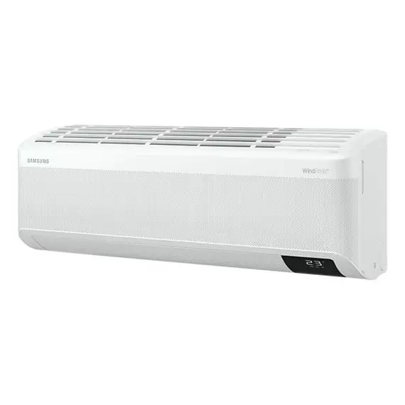 In Samsung’s Air Conditioners With Wind Free Technology, Air Is Gently And Evenly Distributed Throughout The Room Through 23,000 Micro-Holes. This Helps Maintain A Comfortable Level Of Coolness Without Draughts. Samsung Air Conditioners With Wind Free Technology Have A Two-Stage Mode That Changes Automatically. The Desired Temperature Is Quickly Reached In The Fast Cooling Mode And Then Maintained In The Wind-Free Cooling Mode. The cool without the direct draught. Ideal for family rooms, children’s rooms, and play areas. Cools the air 43% faster reaching a distance of 15 meters. With Good Sleep mode you can create the ideal climate in your bedroom for sleeping and use less energy compared to the normal cooling mode. The 3-Step Auto clean function keeps the inside of the aircon clean and hygienic ensuring optimum performance and clean, healthy air. Feature Stay comfortably cool without feeling cold Wind-Free™ Cooling Stay comfortable cool with Wind-Free™ Cooling. It gently and quietly disperses air through 23,000 micro air holes, so there is no unpleasant feeling of cold wind on your skin. Its advanced airflow also cools a wider and larger area more evenly. And it uses 77% less energy than Fast Cooling***. Reduces energy use by 77%* to save money Wind-Free™ Cooling (Energy Saving) Save money every day with highly energy-efficient Wind-Free™ Cooling. When operating in Wind-Free™ mode, the outdoor unit consumes minimal power – using up to 77% less electricity compared to the Fast Cooling mode*. So you can stay comfortably cool without worrying about your electricity bills Enjoy a more intelligent way of living AI Auto Cooling Experience an intelligent way of living with AI Auto Cooling*. It automatically optimizes the various modes by analyzing the room conditions and usage patterns**. Based on your preferred temperature, it automatically switches to the most appropriate mode to maintain the optimal conditions. Reduces noise and energy use by 73%* Digital Inverter Boost Save money every day with highly energy-efficient Digital Inverter Boost technology. It maintains the desired temperature with less fluctuation. It also has neodymium magnets and a Twin Tube Muffler, so it works efficiently, quietly and lasts much longer. And it reduces energy usage by up to 73%*. Sleep much better throughout the night Wind-Free™ Good Sleep The Wind-Free™ Good Sleep mode creates the ideal climate for sleeping – without an unpleasant cold air flow. Its temperature control with Wind-Free™ Cooling helps you fall asleep fast, sleep deeply and comfortably, and wake up feeling fully refreshed. Designed to cool faster, wider & farther Fast Cooling Cool rooms quickly from corner to corner, so you’re always comfortable. Digital Inverter Boost technology cools the air 43% faster*. Its advanced design also has a 15% larger fan, 18% wider inlet and a 31% wider blade. So cool air is dispersed farther and wider**, reaching up to 15 meters. Remotely control it anytime, anywhere SmartThings Control the temperature in your home anytime and anywhere. Using the SmartThings App* you can remotely control and monitor the air conditioner with just a touch. Or simply tell artificial intelligence (AI) system* what you want** and it does it. It even suggests the best settings. Breathe easier with triple air care Tri-Care Filter Keep the air hygienic and maintain the Heat Exchanger’s performance with a Tri-Care Filter. Its 3-layers include a high-density filter that extracts large dust particles, fibers and animal hairs. A Zeolite Coating Filter also captures fine dust, and eliminates viruses, bacteria and allergens. Simply cleans itself – automatically Auto Clean (3 Steps) Keep the inside of your air conditioner hygienic by doing nothing! After it has been working, the Auto Clean function automatically dries the Heat Exchanger using a 3-step process. It removes moisture by blowing air for between 10 to 30 minutes. So it prevents the build-up of bacteria and odors. Enjoy a quieter & more tranquil home Less Noise Cool your living spaces with less noise, so it doesn’t disturb you. The compressor creates a powerful airflow, but works really quietly as it includes a Twin Tube Muffler. It reduces the refrigerant flow noise when operating at high speed and minimizes ambient noise during low speed operation. Easy to clean anti-bacterial filter Easy Filter Plus Keep your air conditioner working efficiently with less effort. The Easy Filter Plus is located outside, on the top, so it can easily be taken out and cleaned. Its dense mesh keeps the Heat Exchanger clean and an anti-bacterial coating helps protect you against dangerous airborne contaminants*. Better Heat Exchanger performance DuraFin™ Enhance the performance and efficiency of the Heat Exchanger using the DuraFin. It is made of a much denser material and is thicker in design. Its improved coating also has more corrosion resistance. So it passes the accelerated Sea Water Acetic Acid Test (SWAAT) for corrosion over 100 days*. Prevents corrosion for lasting cooling DuraFin™ Plus Stay comfortably cool for much longer. The Ocean Fin is made of corrosion-resistant material to protect the condenser from rusting, which helps to maintain the optimal performance of the Heat Exchanger. Its superb corrosion-resistance was proven using the Salt Spray Test (SST) for 480 hours*. Environmentally friendly refrigerant R32 Refrigerant Protect the planet by reducing the impact of climate change. The air conditioner uses the next generation R32 refrigerant, which helps conserve the ozone layer and has a low impact on global warming compared to conventional R22 or R410A refrigerants. So it’s much more environmentally friendly* Saves energy & money, cools effectively ECO Mode Save energy, but still stay cool. ECO mode uses less compressor capacity compared to Normal mode, which reduces energy consumption*. It lets you cool more efficiently when it’s not too hot outsid
