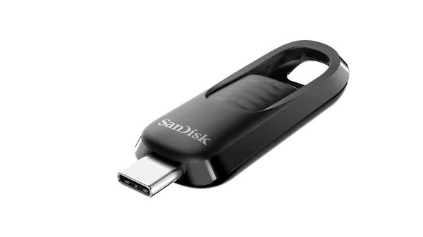 "The SanDisk Ultra Slider USB Type-C Flash Drive delivers speedy, simple storage for your USB Type-C devices. From vacation videos to work presentations, you can easily transfer and access your files at read speeds of up to 400MB/s2 (128GB - 1TB models). Enjoy worry-free, on-the-go storage thanks to two convenient features: a keyring for clipping your device to your keys or favorite bag and a smoothly retractable connector that helps prevent wear and tear. With its minimalist design, rapid speeds, and portability features, the SanDisk Ultra Slider USB Type-C is a great on-the-go accessory for your on-the-go life.