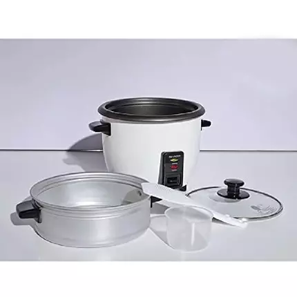 Features: Food steamer with keep warm function Automatic warming system Non-stick coated aluminum inner pot 1.8 L (10 cups) capacity Mechanical control Function On/Off/keep warm Specifications: Brand: Sharp Model: KS-H188G-W3 Type: Rice Cooker Colour: White Capacity: 1.8 Ltr Brand Origin: China Watt: 700 W Features: On/Off Keep warm Food steamer Mechanical control Dimensions: 29.8D x 29.2W x 28.6H Keep Warm: Yes Inner Pan: Non-stick coated aluminum inner pot Measuring Cup: Yes Voltage: 220-240 V Material: Aluminum Frequency: 50/60 Hz Cord Length: 1.8 m Product Weight: 2.8 kg Auto switch off: Yes Bowl Capacity: 1.8 L (10 cups) capacity Packing: 2pcs/Catroon