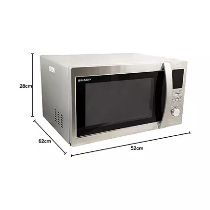 Features: 5 power level 8 Auto Cooking Menu's 345mm Diameter Turntable Child Lock Specifications: Brand: Sharp Model: R-45BT(ST) Type: Microwave Oven Energy Use: 1100 Watts Capacity: 43 Liters Colour: Stainless Steel Dimensions: 62 x 52 x 28 cm; 6 kg
