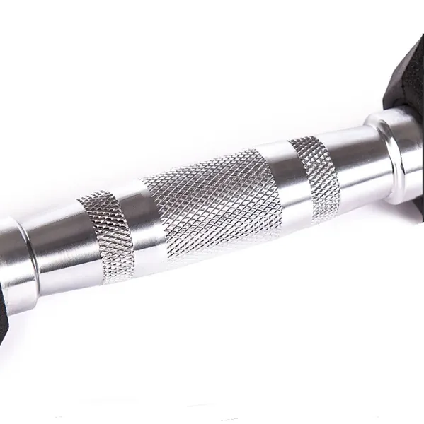 Shen Sports rubber hex dumbbells have been engineered using premium grade cast iron heads, that are coated with a heavy duty rubber compound and securely welded to commercial grade forged steel handles. Our dumbbells feature ergonomically designed handles that are chrome plated to protect them against corrosion and finished with a textured knurling for improved grip and comfort. The heads and handles have been securely fastened to ensure they do not loosen over time. The rubber coating reduces wear and tear to your space plus minimizes noise when you smash out dumbbell exercises.
