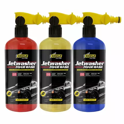 Quick and easy to connect directly to your water supply, this highly effective foam washer starts washing immediately. There is no bucket needed because the shampoo dilution is dosed automatically through the adaptor. Its refillable container allows you to easily add the high foam shampoo refill and water and reuse it for great results every time. Its dense foam removes dirt, road grime, and grease. Suitable for all car and paint finishes, it cleans and shines without causing damage, leaving you with a fresh cherry fragrance. Boasting rich foam that effectively breaks down and removes dirt and road grime, this high-quality car shampoo is safe on all paint finishes. With an innovative bottle that connects directly to the water supply, it shines and conditions in one easy step, with a lovely cherry fragrance that lingers. Features Cleans, shines & conditions in one easy step Automatic shampoo dilution Dense foam removes dirt, road grime, and grease Safe for all paint surfaces Cherry fragrance Specifications Brand: Shield Type: Jetwasher Modal: SH02 Weight: 1liter