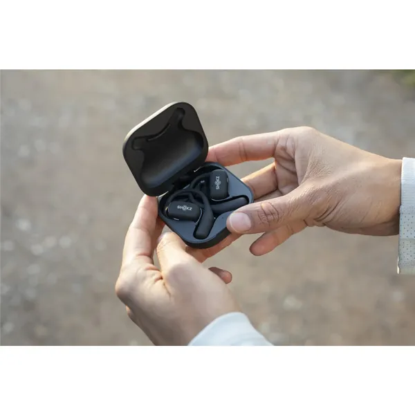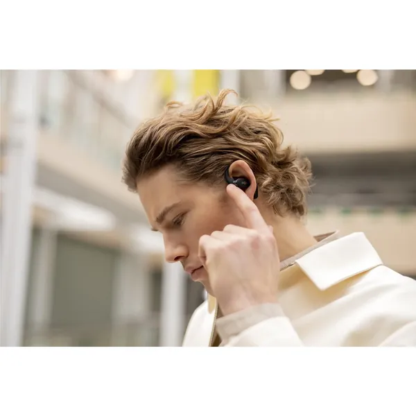 OpenFit continues the Shokz open-ear concept to let users enjoy all-day comfort and hear their own soundtrack while staying open to the world around them. OpenFit offers an ultra-lightweight, open-ear construction to hear both your own audio and every sound around you with crystal clarity.