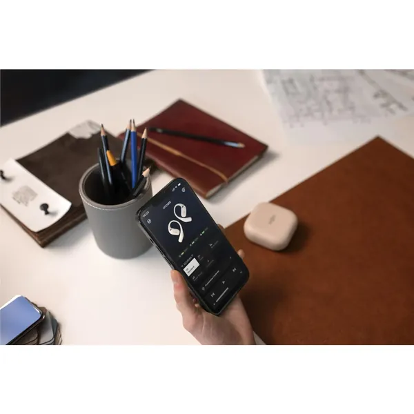 Optimizing the design and material of open-ear earbuds, OpenFit is compact and light, weighing just 8.3 grams.4 The earbuds and battery compartment provide a perfect balance that makes you forget you’re even wearing them.