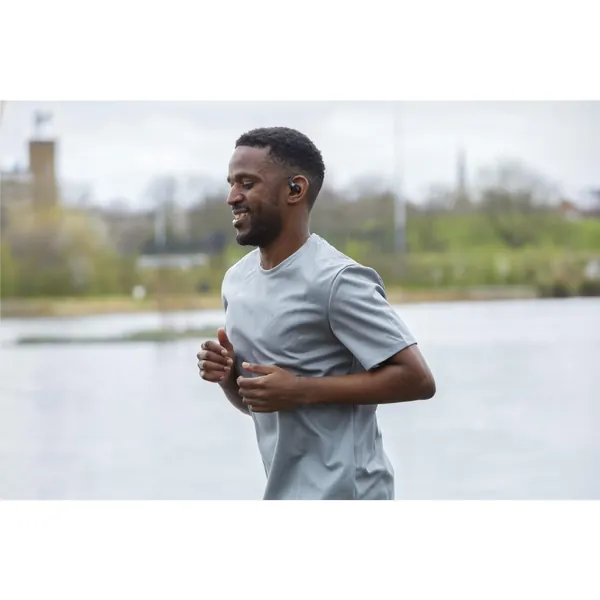 To achieve a shape that provides a secure fit for different ear shapes3, the Shokz Lab scanned a vast array of human ear data from all over the world. The ergonomic and flexible ear hook perfectly wraps around different curves of ears, providing a soft and secure grip. The split design between the earbud and battery balances the weight of the whole system, providing comfort and stability. Feel free to walk, run, and even jump, and OpenFit stays in place.