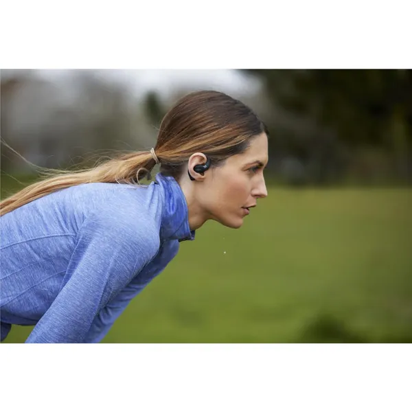 OpenFit features IP54 water resistance and is designed with a double-layer waterproof steel mesh and gauze for additional protection and enhanced sound performance.7 During your sweatiest of workout sessions, keep enjoying your music or audiobook worry-free.
