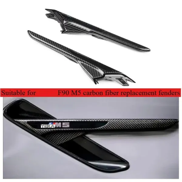 COMPATIBLE WITH BMW 5 SERIES G30 F90 M5 2017-2023 SIDE FENDER AIR VENT TRIM COVERS REAL CARBON FIBER