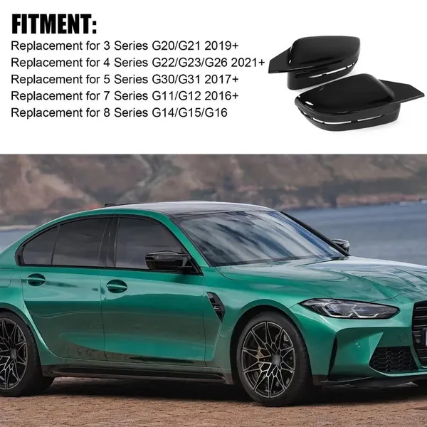 COMPATIBLE WITH BMW 3 SERIES G20 19-24 4 SERIES G22 21-23 5 SERIES G30 17-23 7 SERIES G11 G12 16-23 8 SERIES G14 18-23 SIDE REAR VIEW CASE DOOR WING CAP SHELL HOUSING MIRROR COVERS CARBON LOOK 2