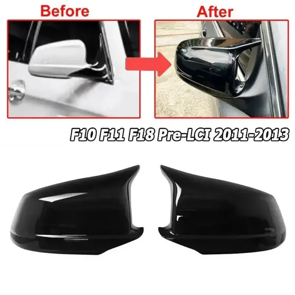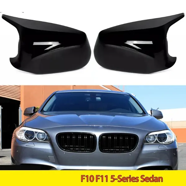COMPATIBLE WITH BMW 5 SERIES F10 2010-2013 PRE LCI SIDE REAR VIEW CASE DOOR WING CAP SHELL HOUSING MIRROR COVERS GLOSSY BLACK