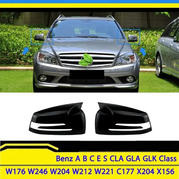 Side Rear View Mirror Cover Cap Ar-mr-059 Glossy Black Ar-mr-059 Gb CC-8578 Compatible With Mercedes A B C E S Gla Cla Class W176 2013-2018 W246 2012-2018 W204 2008-2014 W212 2010-2015 W221 2006-2013