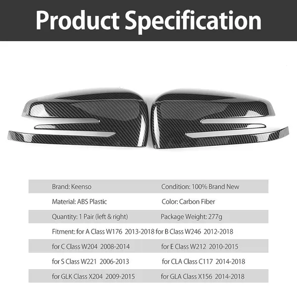 Side Rear View Mirror Cover Glossy Black Zst-167gb CC-2031 Compatible With Mercedes A Class W176 B Class W246 13-18 C Class W204 08-14 E Class W212 10-15 S Class W221 10-14 Cla W117 Gla W156 14-18