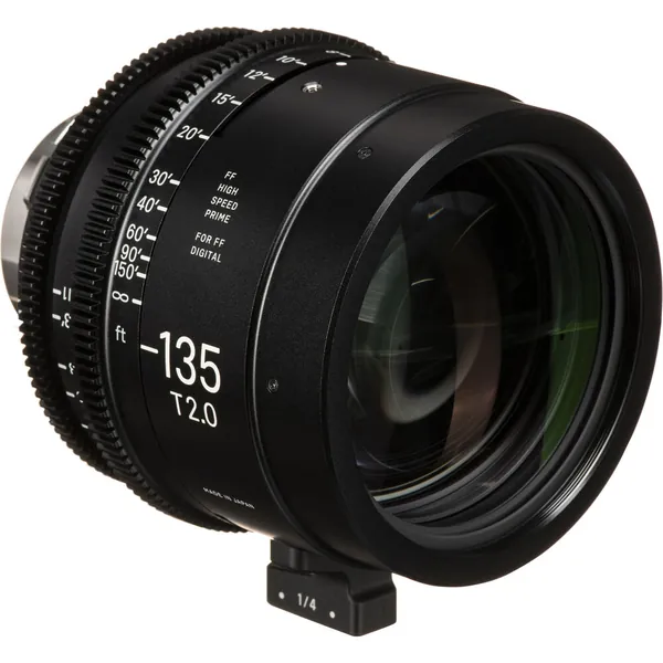 The enhanced 135mm T2 FF High-Speed Cine Prime from Sigma combines the same high-quality optics and mechanics of its FF prime line with a cine-oriented design including Cooke/i Technology that provides lens metadata to assist in post and visual effects production. This 135mm prime with PL mount is a longer focal length in the series offering full-frame sensor coverage, 6 to 8K resolution, lens markings in feet, and a T2 maximum aperture in a compact, lightweight form.