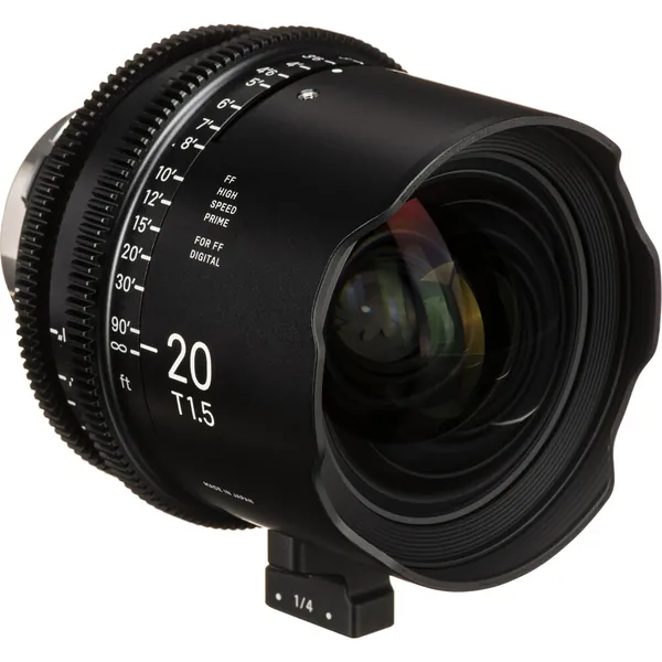 The enhanced 20mm T1.5 FF High-Speed Cine Prime from Sigma combines the same high-quality optics and mechanics of its FF prime line with a cine-oriented design including Cooke/i Technology that provides lens metadata to assist in post and visual effects production. This 20mm prime with PL mount is a wider focal length in the series offering full-frame sensor coverage, 6 to 8K resolution, lens markings in feet, and a T1.5 maximum aperture in a compact, lightweight form.