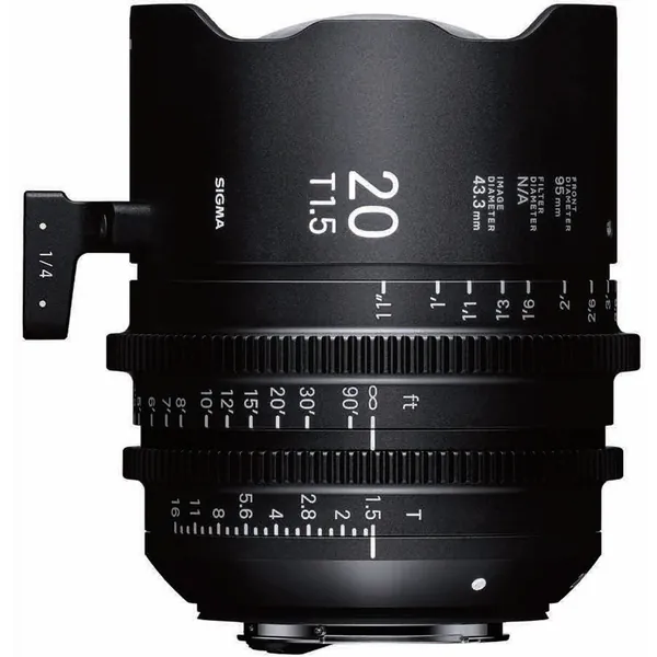 Sigma's FF High-Speed Prime Lenses combine the same high-quality optics and mechanics of their Global Vision still line in a cine-oriented design. This 20mm Sony E mount prime is a wide focal length in the series, offering full frame sensor coverage, 6 to 8K resolution, and a T1.5 aperture in a compact, lightweight form; it is also available in Canon EF and PL mounts. A common 95mm front diameter and similar physical attributes across the lens line make it easier and quicker to mount lens accessories such as matte boxes, follow focuses, and lens control motors.